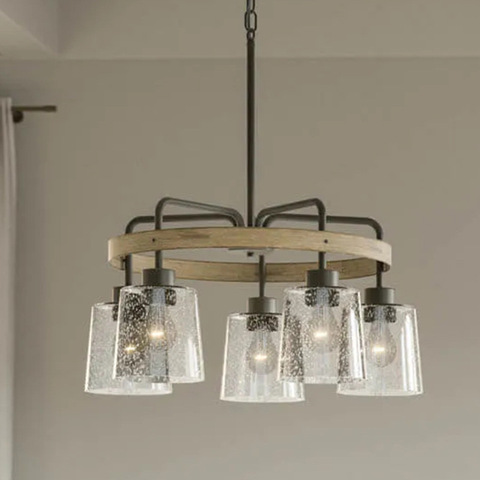 American Retro Modern Farmhouse Led colgante luz negro grano de madera Metal araña para cocina dormitorio restaurante iluminación